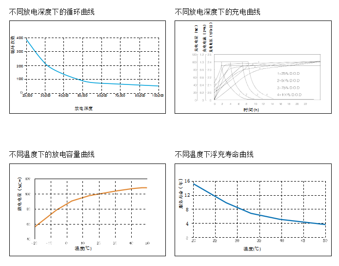 电池深放电后再充电的恢复能力强,100%放电后仍可继续接在负载上,放置4周时间再充电,仍可恢复原容量。